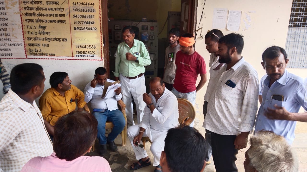 धाता। क्षेत्र की बिजली की समस्या को लेकर कांग्रेस पार्टी के खागा विधानसभा क्षेत्र के पूर्व प्रत्याशी ओम प्रकाश गिहार के नेतृत्व में उप खण्ड अधिकारी खागा व अवर अभियंता से मुलाकात कर सुचारू रूप से लाईट शुरू करने की मांग की गई। अगर विधुत आपूर्ति सुचारू रूप से शुरू नहीं होगी तो एक बड़ा धरना प्रदर्शन होगा। इस मौके पर नगर अध्यक्ष राकेश सिंह,डॉ बी डी सिंह,गुड्डू भाई,असलम भाई ,कमला पासवान,शिवानंद सिंह, सुरेंद्र सिंह,अमर सिंह, इरशाद अली आदि लगभग एक दर्जन लोग उपस्थित रहे।