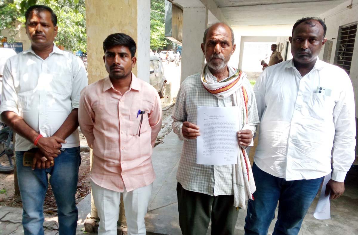 – एसपी को शिकायती पत्र देने जाता पीड़ित परिवार।