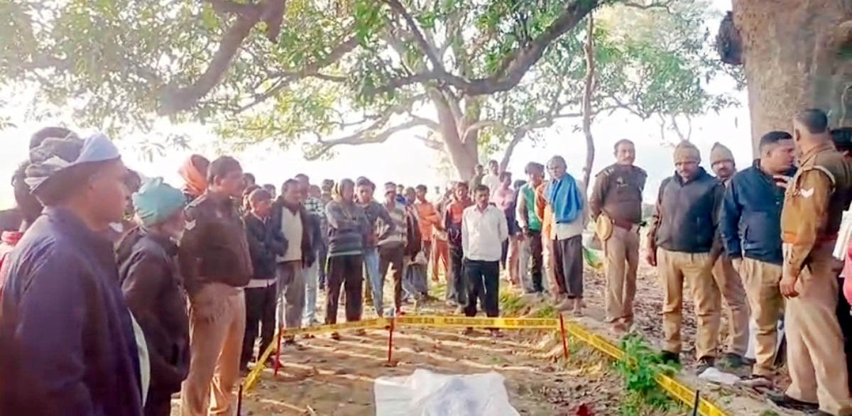– घटनास्थल पर मौजूद पुलिस बल व ग्रामीणों की लगी भीड़।