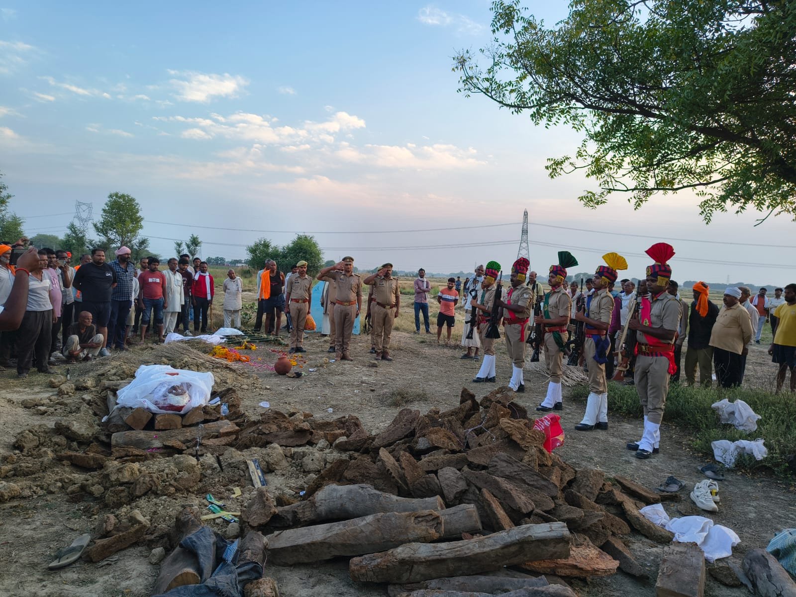 जहानाबाद। थाना क्षेत्र के गांव जाफरपुर सिठर्रा के मजरे डेरा निवासी इन्दल पुत्र स्वर्गीय श्री राम गिहार 56 वर्षीय जो कि जनपद कानपुर देहात के माती में मुख्य आरक्षी के पद पर तैनात थे बीते लगभग एक वर्ष से बीमार चल रहे थे जिसके चलते वह मेडिकल लीव पर घर में रहकर कानपुर में इलाज करा रहे थे गुरुवार को कानपुर के हैलट अस्पताल में उपचार के दौरान उनकी मौत हो गई सूचना मिलते ही थाना प्रभारी मनीष कुमार सिंह पुलिस बल के साथ गांव पहुंचे और गार्ड ऑफ ऑनर के साथ अन्तिम संस्कार किया गया म्रतक की पत्नी का देहांत पूर्व में ही हो गया था तथा दो पुत्र बृजेश एवं अभिषेक है तथा बहू प्रतिमा उर्फ काजल पत्नी अभिषेक लखनऊ में उप निरीक्षक के पद पर तैनात हैं अंतिम संस्कार के दौरान प्रमुख रूप से पूर्व प्रधान सुरेश उत्तम, महिला मोर्चा की जालिन्द्री , सहित आदि मौजूद रहे