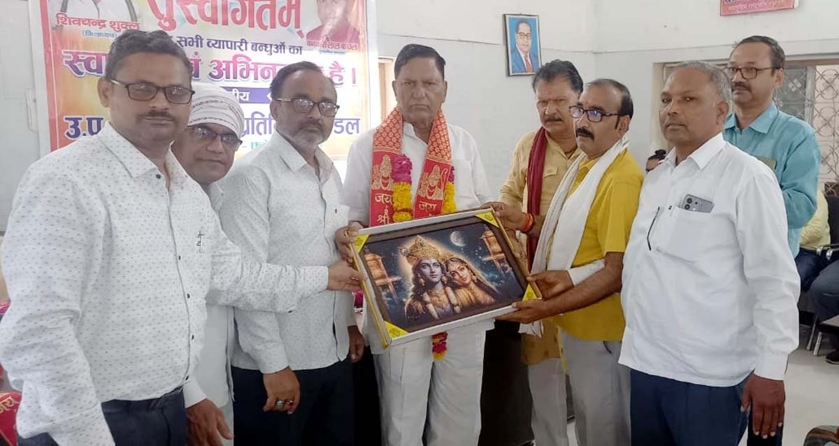 – प्रदेश अध्यक्ष बनवारी लाल कंछल का स्वागत करते व्यापारी।