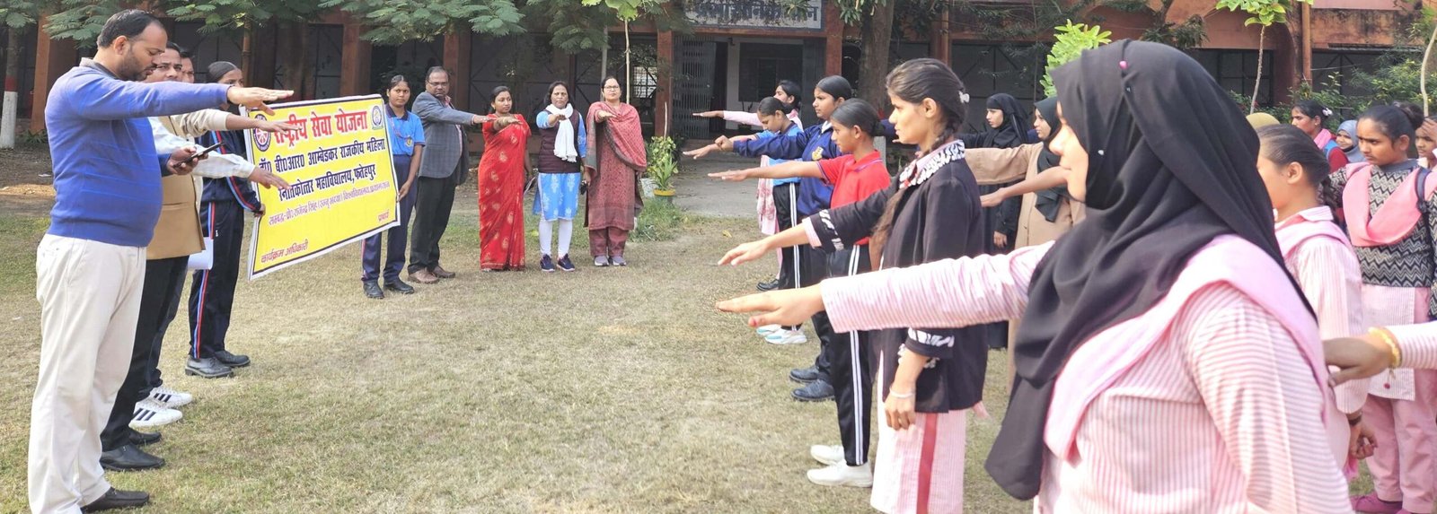 फतेहपुर। डॉ0 भीमराव अंबेडकर महिला स्नातकोत्तर महाविद्यालय में नशा उन्मूलन समिति एवं राष्ट्रीय सेवा योजना तत्वाधान में नशा मुक्त भारत अभियान के तहत महाविद्यालय में सामूहिक नशा मुक्ति शपथ ग्रहण समारोह का आयोजन महाविद्यालय के प्राचार्य प्रोफेसर डॉ0 राजेश कुमार यादव के कुशल निर्देशन में किया गया। नशा उन्मूलन समिति के प्रभारी आनंद नाथ ने सभी छात्राओं को एवं महाविद्यालय परिवार को स्वयं को नशे से दूर रहने के लिए शपथ दिलाई एवं घर परिवार एवं समाज में जागरूकता हेतु प्रण लिया। कार्यक्रम के अंत में प्राचार्य प्रोफेसर डॉ राजेश कुमार यादव ने नशे की सामाजिक आर्थिक एवं मानसिक दुष्प्रभावों पर विस्तार से चर्चा किया साथ ही महाविद्यालय स्तर पर नशा मुक्ति अभियान में होने वाले कार्यक्रमों की रूपरेखा प्रस्तुत की अंत में मानव जीवन में स्वास्थ के महत्व को बताते हुए कहा कि सभी को स्वस्थ रहने के लिए अपनी जीवनशैली में परिवर्तन करने की जरूरत है क्योंकि स्वस्थ शरीर में स्वास्थ मस्तिष्क निवास करता है। इस अवसर पर डॉ0 शकुन्तला, डॉ0 लक्ष्मीना भारती, डॉ0 प्रशांत द्विवेदी, शरद चंद्र रॉय, रमेश सिंह, डॉ0 चारु मिश्रा, डॉ0 मधुलिका श्रीवास्तव, डॉ0 चंद्र भूषण सिंह, डॉ0 जिया तसमीम, बृजेश पाल, डॉ0 अनुष्का छौंकर, डॉ0 राजकुमार एवं समस्त महाविद्यालय परिवार उपस्थित रहा।