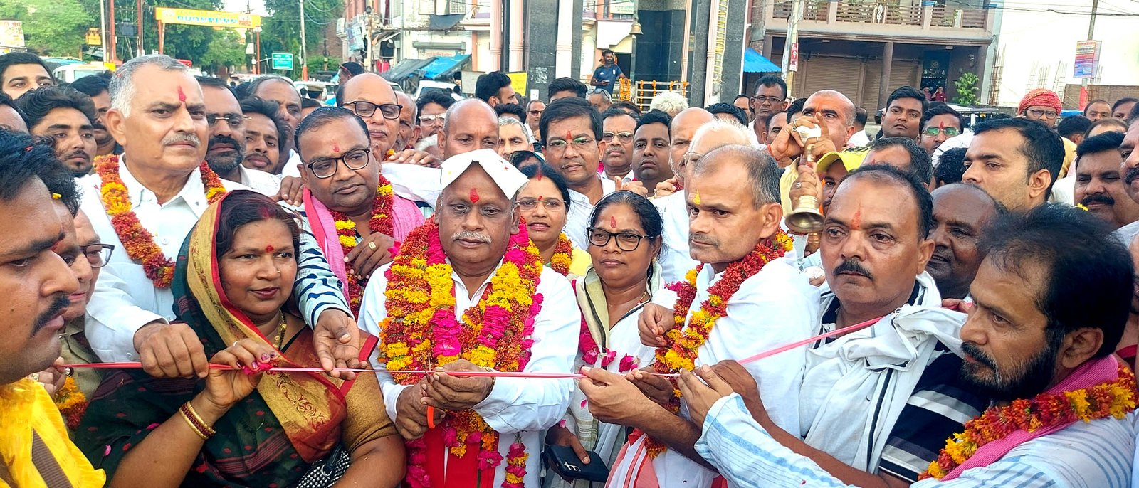 –  तांबेश्वर मंदिर के प्रवेश द्वार का फीता काटकर उद्घाटन करते सदर विधायक चन्द्र प्रकाश लोधी।