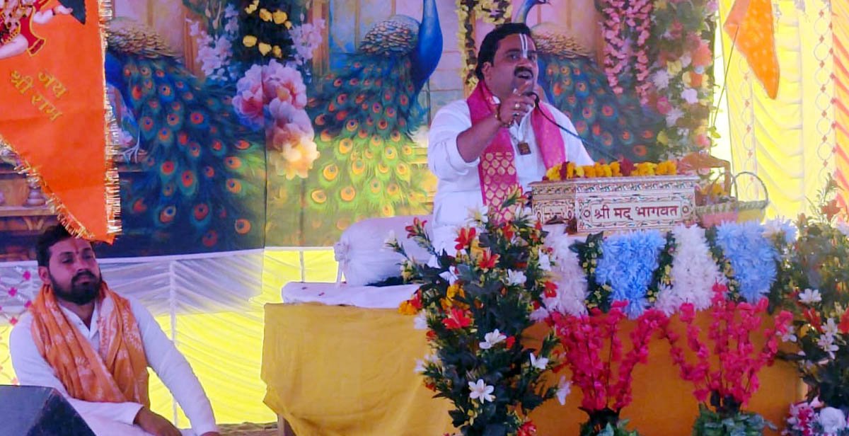 – भागवत कथा में प्रवचन करते भार्गव मुनीष जी महाराज।