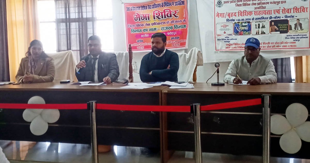 फतेहपुर। जिला विधिक सेवा प्राधिकरण के पूर्ण कालिक सचिव ने बताया कि आगामी 22 फरवरी को आयोजित होने वाले मेगा शिविर को सफल बनाने के लिए जनपद न्यायाधीश/जिला विधिक सेवा प्राधिकरण के अध्यक्ष के निर्देशानुसार मंगलवार को प्री मेगा शिविर का आयोजन तहसील खागा के सभागार में किया गया। शिविर में सचिव जिला विधिक सेवा प्राधिकरण, जिला प्रेबेशन कार्यालय, जिला चिकित्सा विभाग, पशुपालन विभाग, जिला दिव्यांग कल्याण विभाग, रेशम विभाग, जिला खाद्य एवं रसद विभाग, खनन विभाग, राजस्व विभाग, राज्य पिछडा वर्ग, जिला उद्योग केन्द्र, मत्स्य विभाग सहायक श्रम आयुक्त श्रम विभाग, नगर पालिका परिसद फतेहपुर एवं वन स्टाप सेन्टर विभाग के अधिकारीगण उपस्थित रहे। कार्यक्रम में उपस्थित समस्त विभागों द्वारा लाभार्थियों को चिन्हांकन कर उनका पोर्टल पर रजिस्टर्ड किया गया। जिससे आगामी बाइस फरवरी को आयोजित होने वाले मेगा शिविर/बृहद सहायता शिविर के आयोजन को सफल बनाया जा सके।