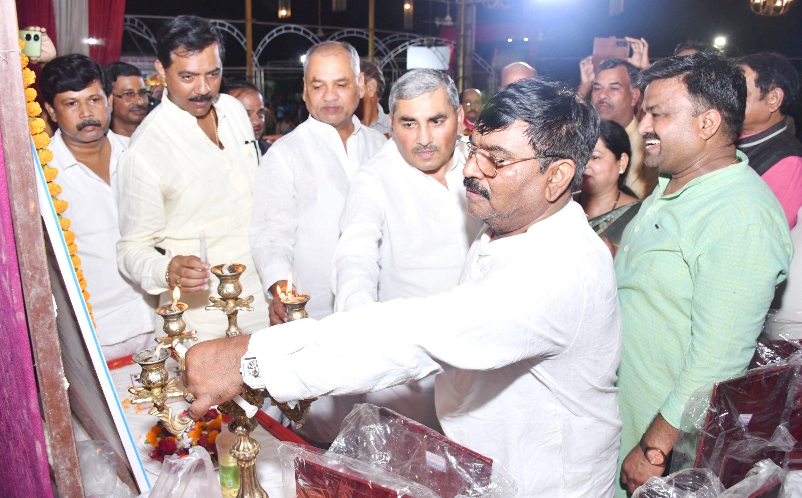 फतेहपुर।       समाज की तरक्की शिक्षा और संगठन से ही संभव है। उक्त विचार प्रकट करते हुये शाह अयाह विधायक विकास गुप्ता ने व्यक्त किये। भारतीय दोसर वैश्य महासमिति द्वारा झंडा गीत के रचयिता पदम श्री श्यामलाल गुप्त पार्षद जी के जन्म दिवस के अवसर पर आयोजित सांध्य काललीन कार्यकम देव गार्डेन में मनाया गया। जिसमें समाज के लोगों ने बढ चढकर सहभागिता निभाई। देश भक्ति के गीतों में दर्शक झूम गये। कार्यक्रम का शुभारंभ मुख्य अतिथि शाह अयाह विधायक विकास गुप्ता, महासमिति के राष्ट्रीय अध्यक्ष सुनील गुप्त, नगर पालिका अध्यक्ष राजकुमार मौर्य, भाजपा जिलाध्यक्ष मुखलाल पाल, जिला कांग्रेस अध्यक्ष महेश द्विवेदी द्वारा दीप प्रज्वलित कर तथा पार्षद जी के तैलीय चित्र पर माल्यार्पण के साथ हुआ। मुख्य अतिथि के रूप में उपस्थित शाह अयाह विधायक विकास गुप्त ने कहा कि समाज की तरक्की शिक्षा और संगठन से ही संभव है। जब तक हम अपने अधिकारों के लिये एकजुट नहीं होंगे तब तक विकास की मुख्य धारा से जुडना मुश्किल है। महासमिति के राष्ट्रीय अध्यक्ष सुनील गुप्ता ने कहा कि बदलते सामाजिक और राजनीतिक परिद्रश्य में समाज को मुख्य धारा से जोडना होगा। कार्यक्रम में महिलाओं की अत्यधिक उपस्थित इस बात की सूचक है कि समाज एकजुट हो रहा है। मातृ शक्तियों ने भी अपने को संगठन से जोडा है। स्वागताध्यक्ष संजय गुप्ता ने सभी अतिथियों को अंग वस्त्र एवं प्रतीक चिन्ह देकर सम्मानित किया। अध्यक्षता करते हुये सुरेश गुप्त ने आये हुये अतिथियों का आभार व्यक्त करते हुये एकजुटता पर बल दिया। भाजपा जिलाध्यक्ष मुखलाल पाल, नगर पालिका अध्यक्ष राजकुमार मौर्य, कांग्रेस जिलाध्यक्ष महेश द्विवेदी ने सभी को संगठित रहने का संदेश दिया। कार्यक्रम का संपफल संचालन महाििसमति के राश्ट्रीय वरिष्ठ उपाध्यक्ष विनोद गुप्ता ने किया। इस मौके पर जिलाध्यक्ष नारायण बाबू गुप्ता, राष्ट्रीय महासचिव प्रमोद गुप्त, राम विशाल गुप्त, सुनीता गुप्ता, कविता गुप्ता, साजन गुप्ता, सुशील गुप्ता, वैश्य एकता परिषद के प्रदेश युवा अध्यक्ष शैलेंद्र शरन सिंपल, पूनम गुप्ता, अशोक गुप्त, अरूण गुप्त, मनीष गुप्त, दुर्गाशंकर गुप्त, अमित गुप्त, आनंद गुप्त, एकता गुप्त, सीमा गुप्ता, नमृता गुप्ता, अमिता गुप्ता सहित जनपद के कोने कोने से समाज के लोग उपस्थित रहे।