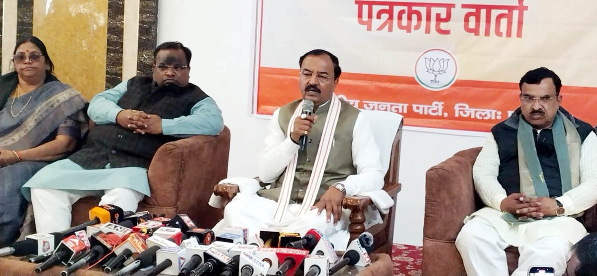 – पत्रकारों से वार्ता करते डिप्टी सीएम केशव प्रसाद मौर्य।
