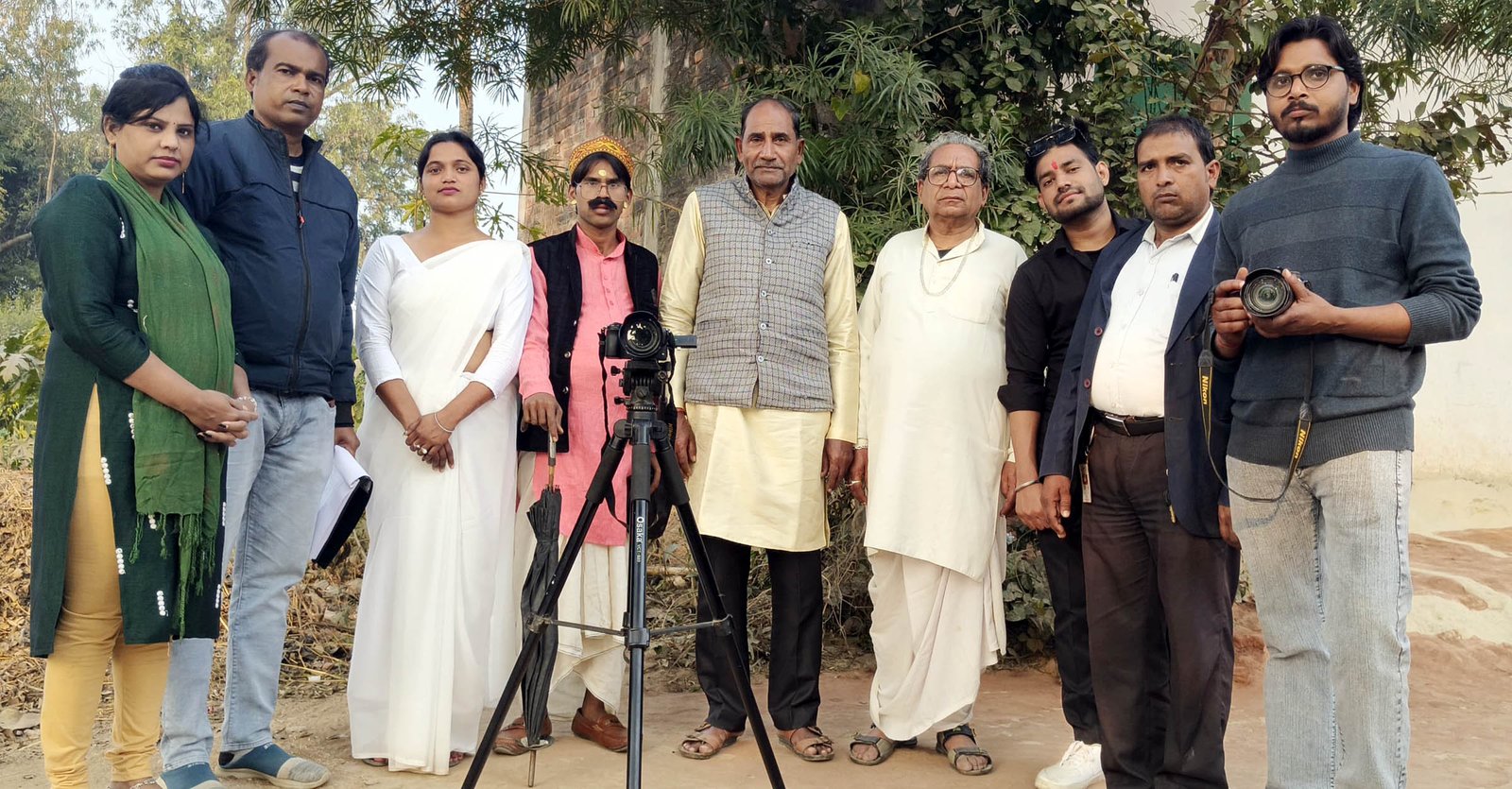 – अवधी फिल्म दंश की शूटिंग में शामिल कलाकार।