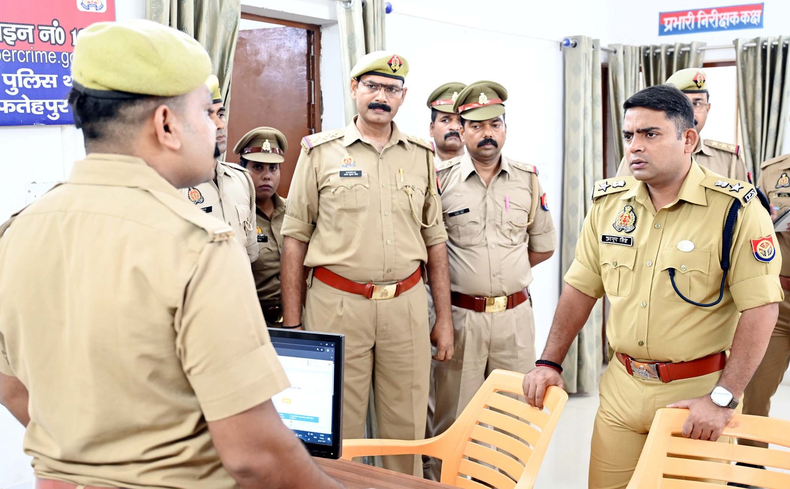 –  साइबर क्राइम थाने का निरीक्षण करते एसपी अनूप कुमार सिंह।