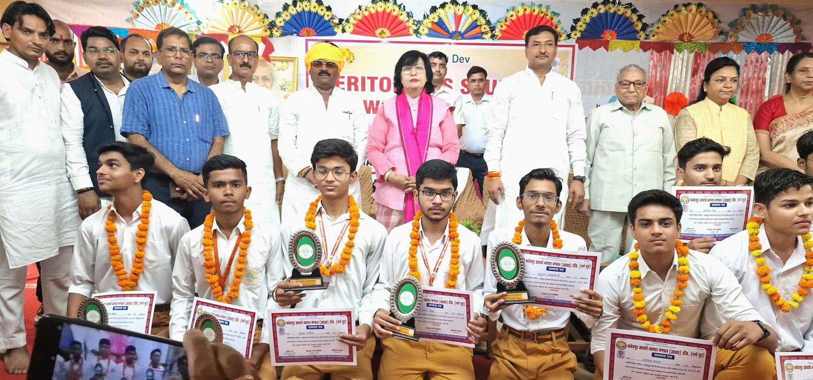 फतेहपुर। नगर स्थित महर्षि विद्या मन्दिर में आदर्श व्यापार मंडल द्वारा प्रतिभा सम्मान समारोह का आयोजन हुआ। मुख्य अतिथि के रूप में प्रतिभा शुक्ला महिला कल्याण एवं बाल विकास पुष्टाहार राज्य मंत्री उत्तर प्रदेश सरकार उपस्थित रहीं। कार्यक्रम का प्रारम्भ सरस्वती जी की प्रतिमा पर पुष्पार्चन व द्वीप प्रज्वलन से किया गया। विद्यालय के प्रधानाचार्य ने पुष्पगुच्छ व स्मृति चिन्ह भेंट कर उनका स्वागत किया गया। विद्यालय की छात्राओं द्वारा स्वागत गान प्रस्तुत किया गया। कक्षा 10वीं बोर्ड परीक्षा में सर्वाेच्च 97.87 प्रतिशत प्राप्त अंक प्राप्त करने वाले मैत्रेय सिंह एवं 12वीं की बोर्ड परीक्षा में अधिकतम अंक प्राप्त करने वाले सक्षम पाण्डेय व महिमा गुप्ता के अतिरिक्त 90 प्रतिशत से अधिक अंक प्राप्त करने वाले आयुष्मान सिंह, कुमार विनीत, अक्षिता शुक्ला, सुयश पाण्डेय, विदुषी शाम्भवी, अखण्ड मृद्दल, साक्षी सचान, संस्कृति गुप्ता, हुस्ने इस्मा, साहिल यादव पार्थ रंजन, दिव्येन्द्र दीवा मिश्रा, पुष्पराज, दक्षा लाल, अनिकेत सिंह, अनुराग, अनवेशा, कनक, शाश्वत, अक्षय, अथर्व आर्यन, सार्थक पटेल, अवनी पटेल, जीविका, अविरल, दिव्या आदि को मुख्य अतिथि व विशिष्ट अतिथि द्वारा प्रमाण पत्र व स्मृति चिन्ह देकर सम्मानित किया गया। भारतीय जनता पार्टी के जिलाध्यक्ष मुखलाल पाल व पूर्व जिलाध्यक्ष प्रमोद द्विवेदी ने एक राष्ट्र एक चुनाव पर अपने व्याख्यान दिये। मुख्य अतिथि ने कहा कि बच्चे देश के भविष्य है। शिक्षक बच्चों को बेहतर शिक्षा और संस्कार देकर उन्हें आगे बढ़ाने का काम कर सकते हैं। महर्षि विद्या मन्दिर इस दिशा में अच्छा कार्य कर रहा है। उन्होंने लोकमाता अहिल्याबाई होल्कर के जन्म के 300 वर्ष पूरे होने पर कहा कि विषम परिस्थितियों में भी अहिल्याबाई ने मुगलों का सामना किया और 3175 मन्दिरों का निर्माण कराया। उन्होंने राष्ट्र की एकता व अखंडता कायम रखने के लिए देश के कोने-कोने में मठ मन्दिरों का निर्माण कराया। इस अवसर पर विद्यालय के प्रधानाचार्य प्रमोद कुमार त्रिपाठी को शिक्षा के क्षेत्र में उत्कृष्ट कार्य करने व बेहतर परीक्षा परिणाम देने के लिए मंत्री के द्वारा प्रशस्ति पत्र देकर पुरस्कृत किया गया।