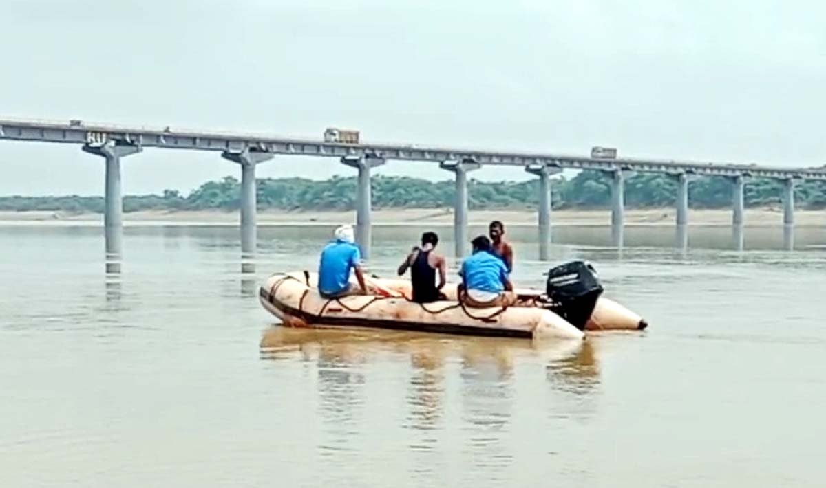 – यमुना में डूबी बहनों की तलाश करती एसडीआरएफ की टीम।
