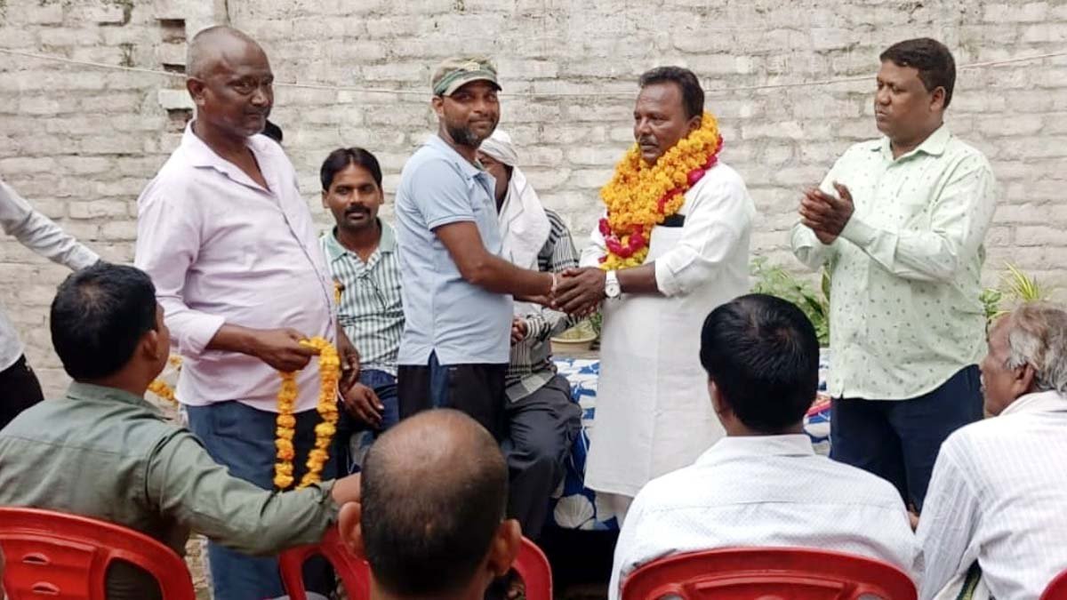 – प्रदेश अध्यक्ष धीरज कुमार का स्वागत करते लोग।